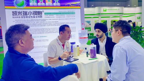凯米瑞品牌所带来的“凯米瑞果菜®”NETE新型水溶肥、“凯米瑞小钢炮®”NAM水溶型稳定性特肥、“黑元素®”高塔深度活化腐植酸螯合水溶特肥、“恩隆歌达®”NETE长效新型特种功能颗粒水溶肥等一系列新特肥产品,受到参会的中外客商的青睐,洽谈产品与技术合作,成绩显著。